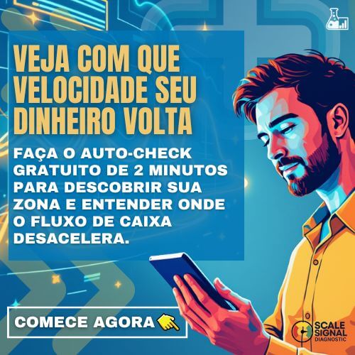 A maioria dos empreendedores mede faturamento e leads — mas não o tempo. O Scale Signal Self-Check™ é uma autoavaliação simples baseada no Scale Signal Framework™, que mede sua velocidade de caixa: quão rápido o dinheiro investido retorna. Em apenas dois minutos, você estima sua Zona de Scale Signal™ (Vermelho, Amarelo ou Verde) e descobre se o seu capital se move rápido o suficiente para sustentar o crescimento.